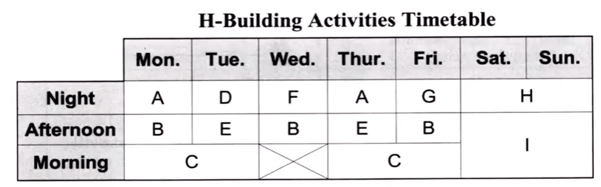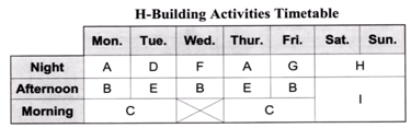 Complete the timetable. Write the correct letter A-I next to questions 17-20.