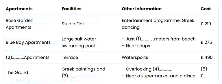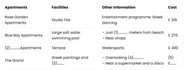 Complete the table below. Write ONE WORD OR A NUMBER.